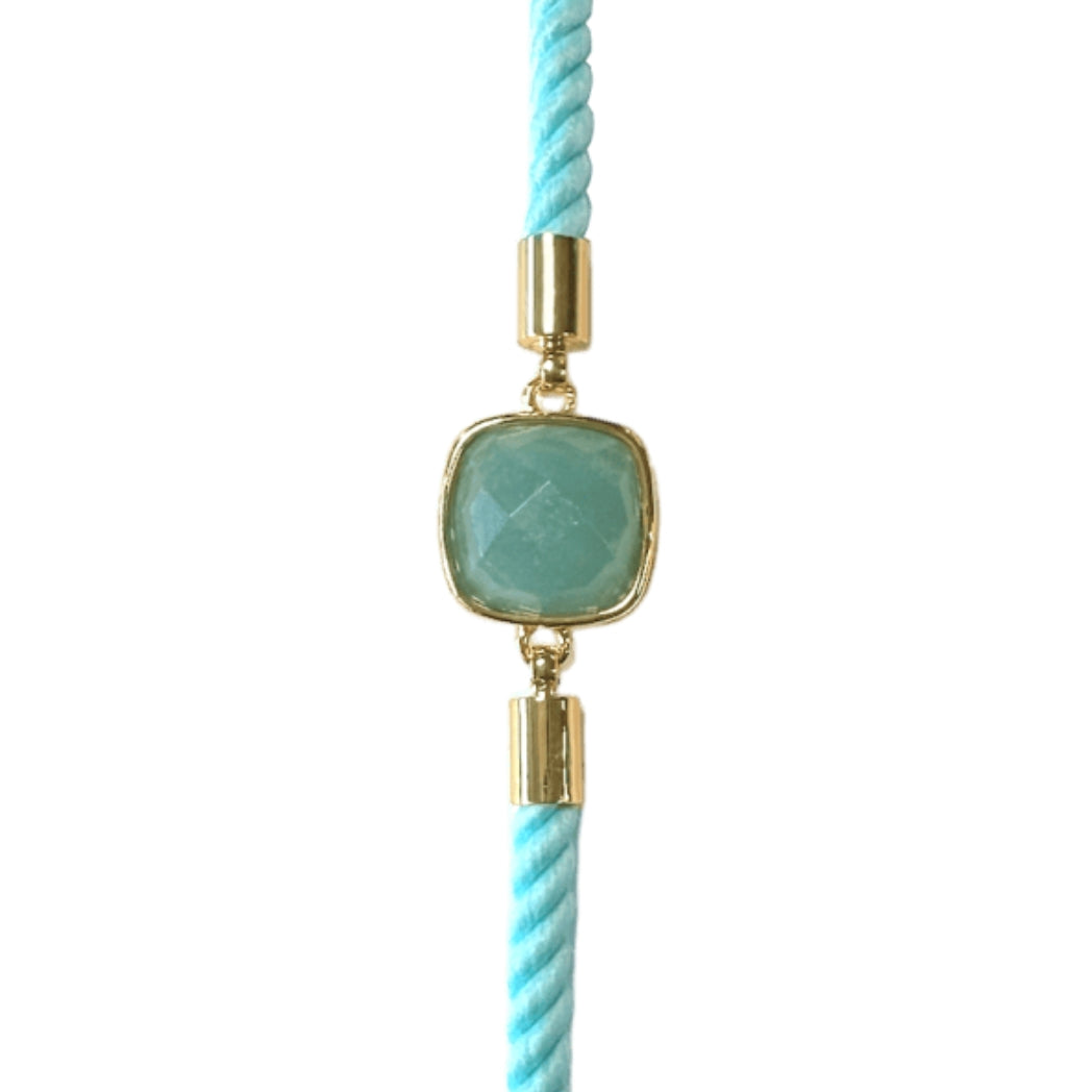 Dieses verstellbare Armband mit quadratischem Amazonit Medaillon ist eine elegante Ergänzung für jedes Outfit. Fühlen Sie sich rundum ausgeglichen mit diesem wunderschönen Armband.