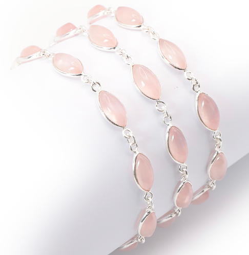 ARMBAND Silber mit Rosenquarz - Naturstein oval