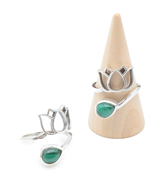 SILBERRING mit Malachit Stein - verstellbares Modell