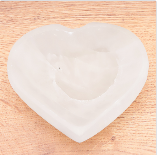 Die SELENIT-SCHALE in Herzform ist perfekt für Dekorationen in Haus und Garten und ist ein Kunsthandwerk. Mit einem Durchmesser von 100mm oder 140mm und der einzigartigen Form, bringt sie natürliche Schönheit in jeden Raum. Selenit hat auch die Fähigkeit, negative Energie zu absorbieren, so dass die Schale nicht nur dekorativ, sondern auch funktional ist.